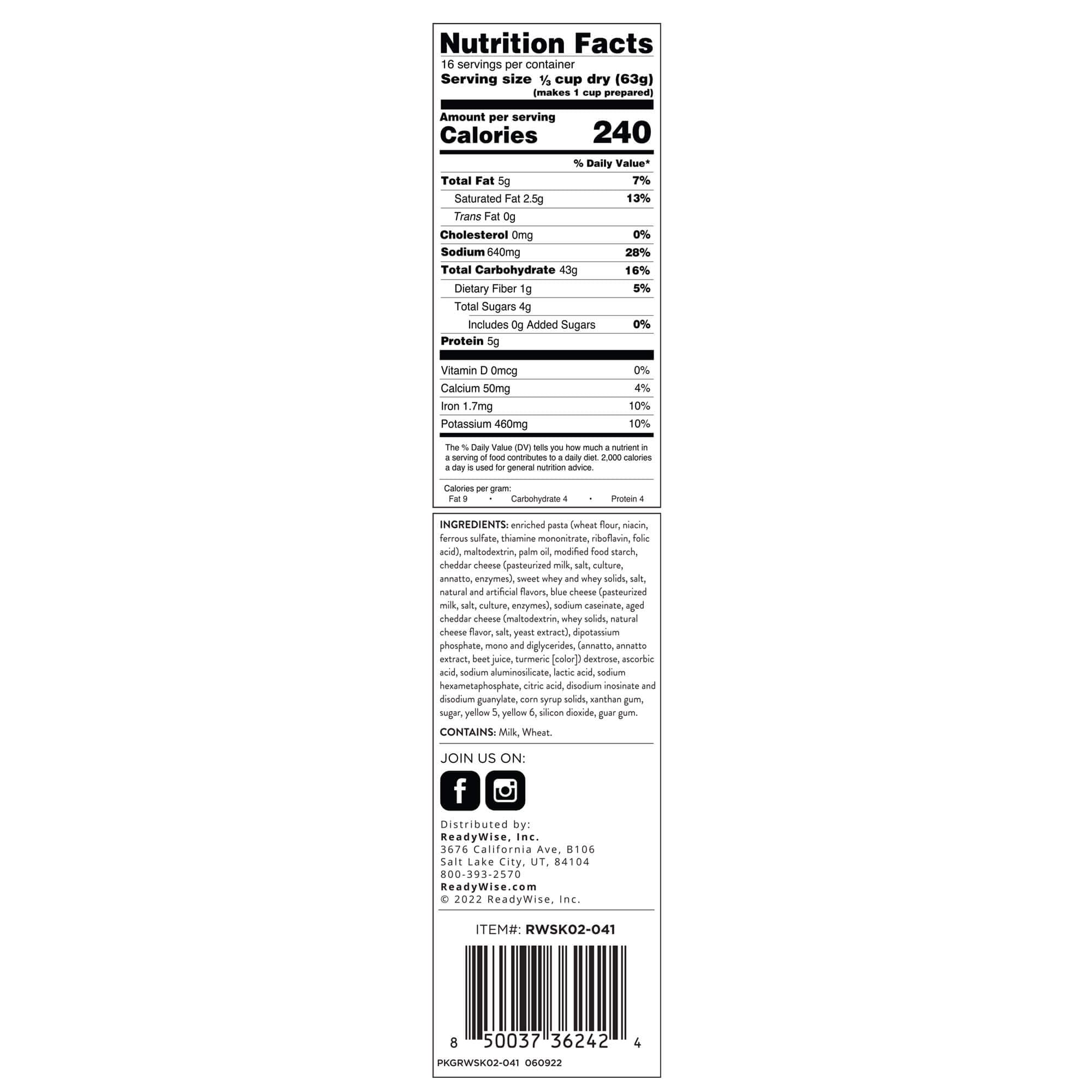 • 2 × ReadyWise Macaroni & Cheese Mix – 16 servings per pouch