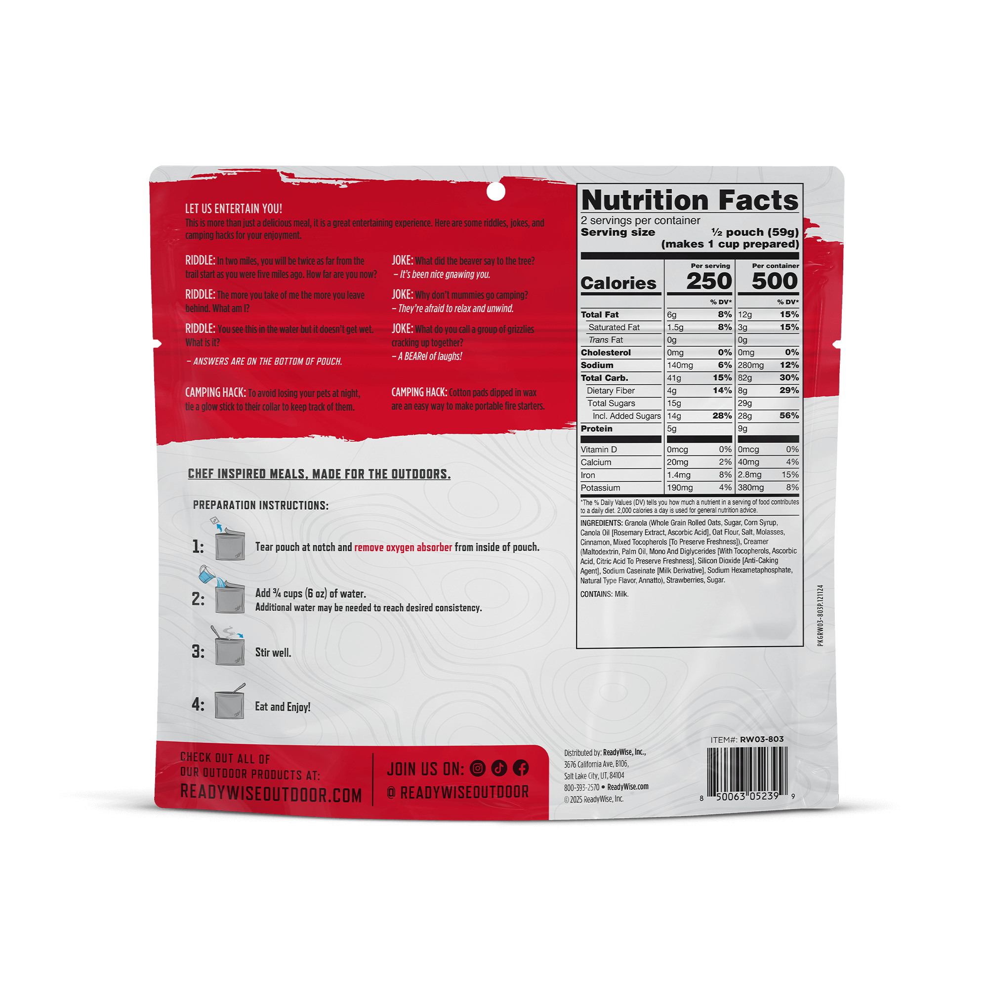 Tasty and convenient, ReadyWise Adventure Meals deliver satisfying meals for all your outdoor activities. Whether you're hiking, backpacking, or camping, each pouch offers a flavorful, no-fuss option that’s ready when you are.